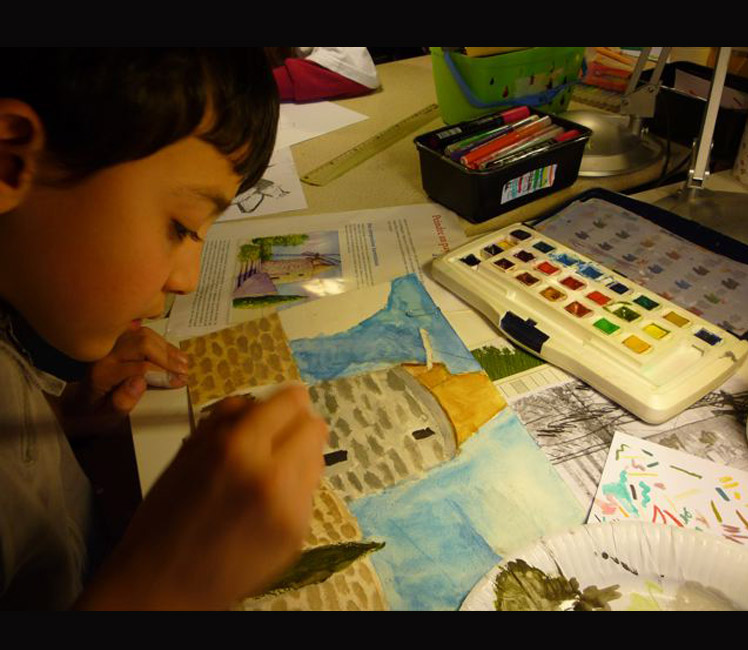 Pour les plus âgés, les enfants commenceront à apprendre, à leur rythme, les différentes techniques proposées (gouache, pastel, fusain, aquarelle, acrylique).